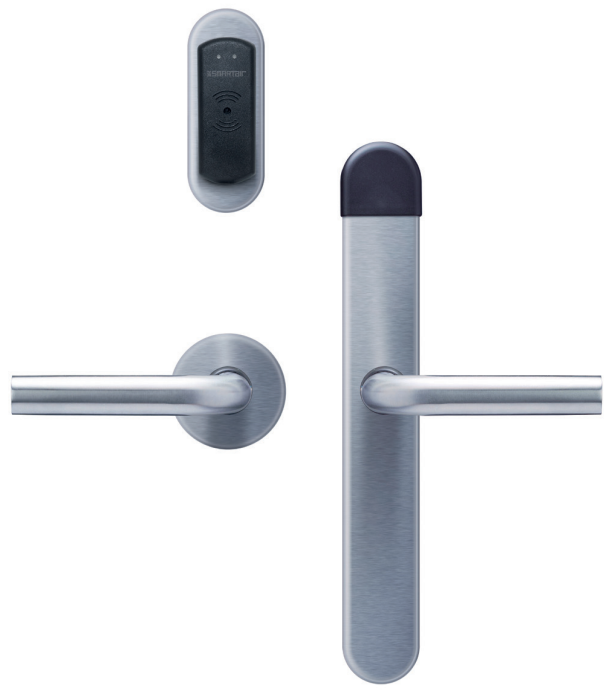 Der elektronische Beschlag SMARTair i-max bietet eine hohe Widerstandsfähigkeit für den robusten Einsatz wie zum Beispiel in Büros, Klassenzimmern, Besprechungsräumen oder Laboren. Besonders widerstandsfähiger Türbeschlag (EN 1906, Gebrauchskategorie: Klasse 4). Der Türdrücker ist freilaufend, wenn die Tür verriegelt ist, und sämtliche Sicherheitskomponenten sind auf der Türinnenseite platziert. Für die Installation ist keine Verkabelung erforderlich.