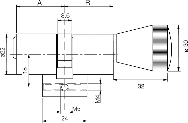 - Kegeliger Zylinderkernkopf mit verstärkter Schlüsselführung