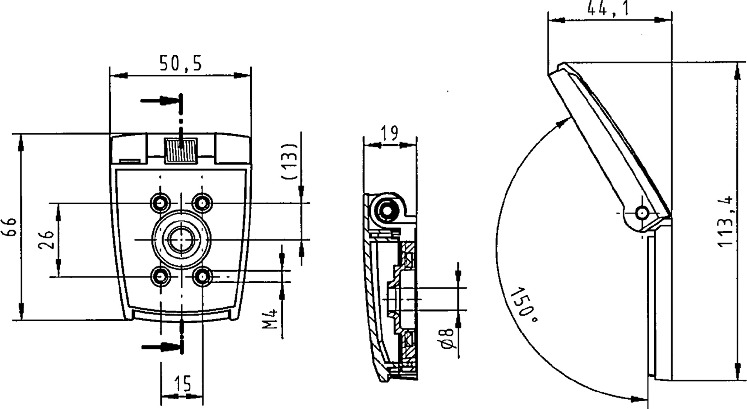 - Äußere Abmessungen maximal Breite 50 mm, Höhe 66 mm, Tiefe 19 mm