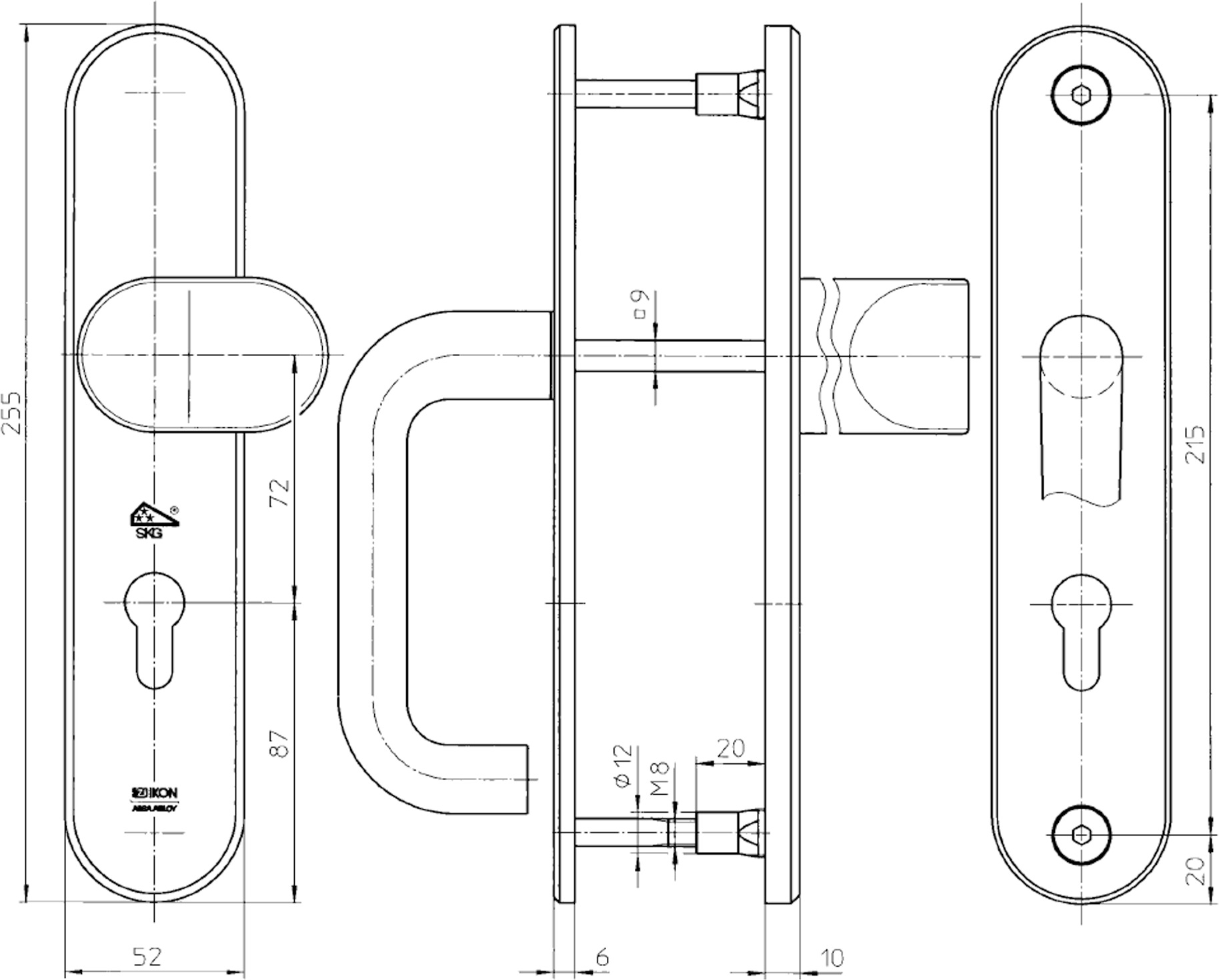 Stahl-Schutzbeschlag mit PZ-Lochung - Winkelknauf/Drücker SX08