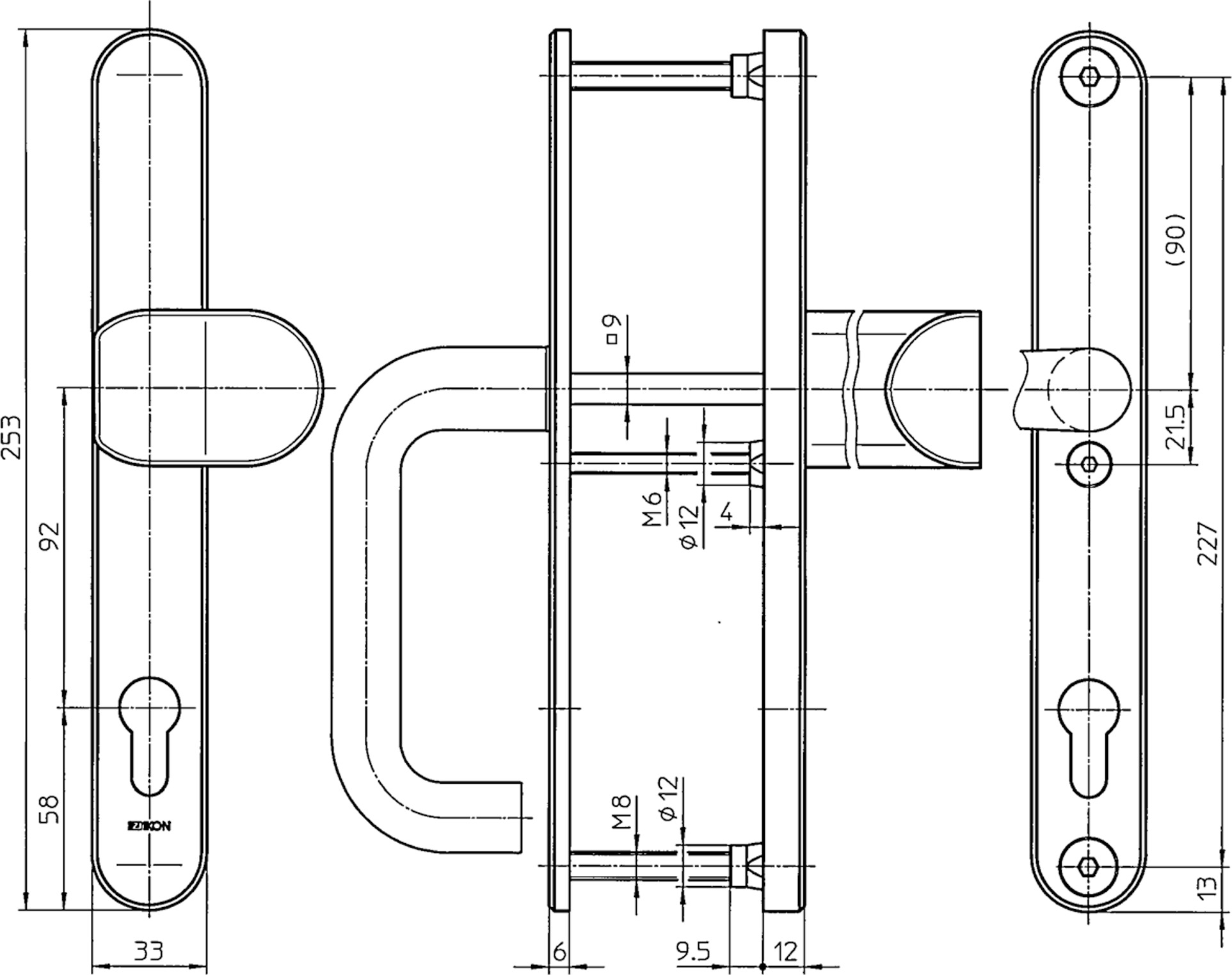 • Material Drücker: Leichtmetall eloxiert mit Stahlkern