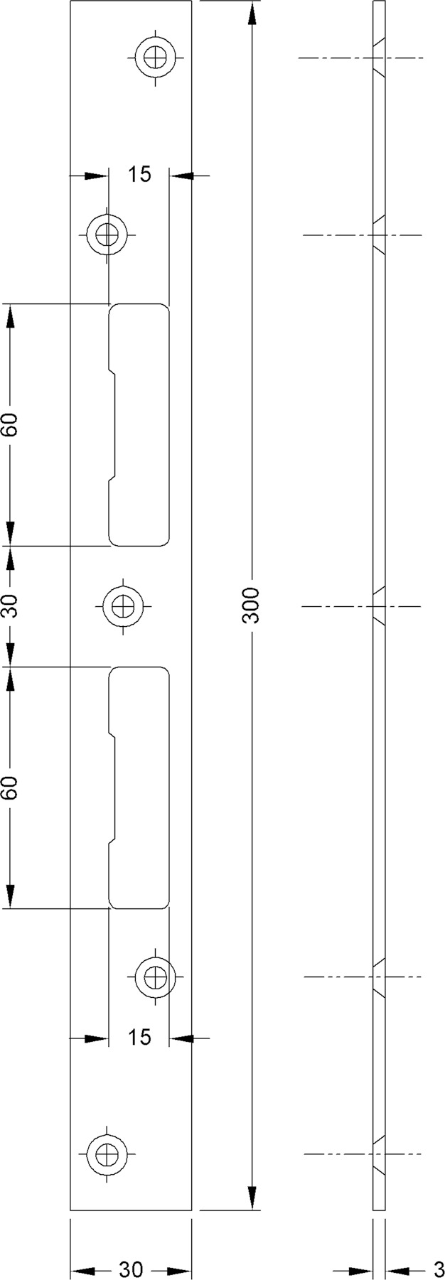 Flach-Sicherheitsschließblech für stumpfeinschlagende Türen 9M58