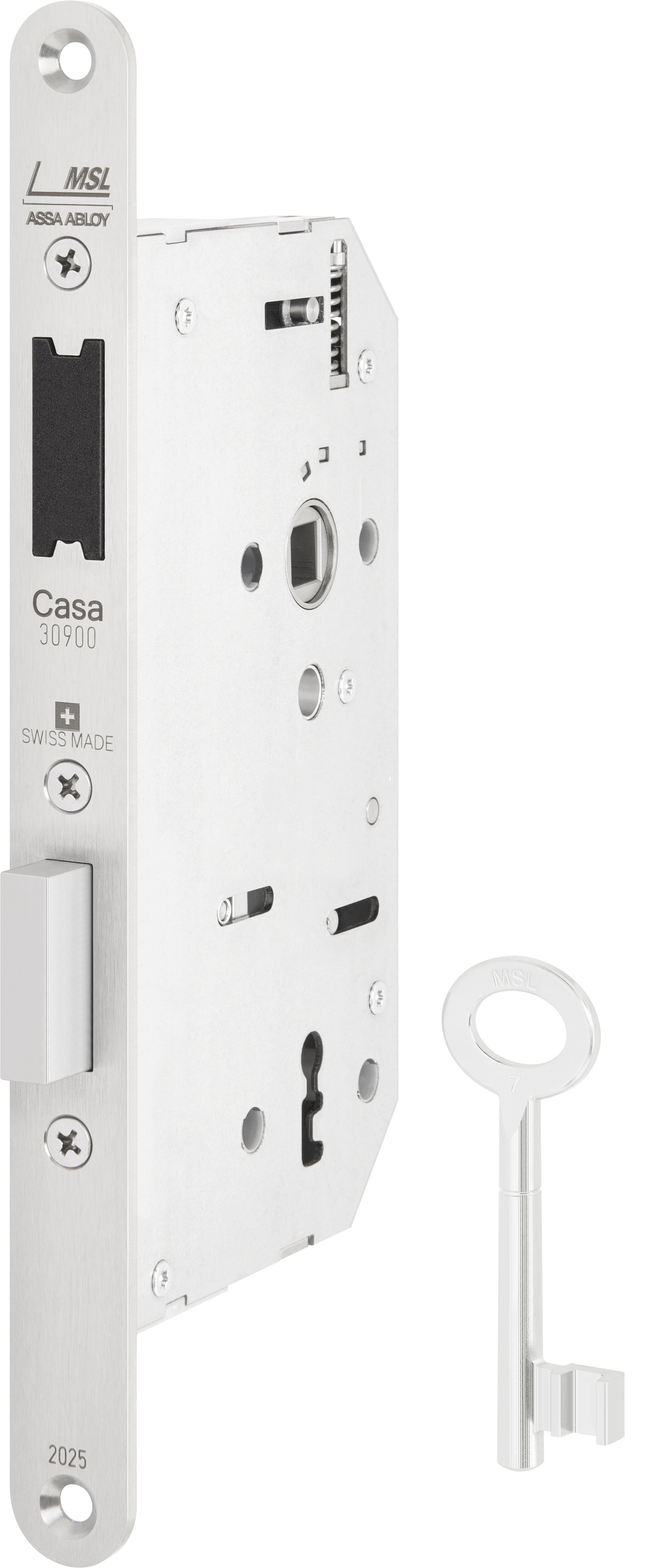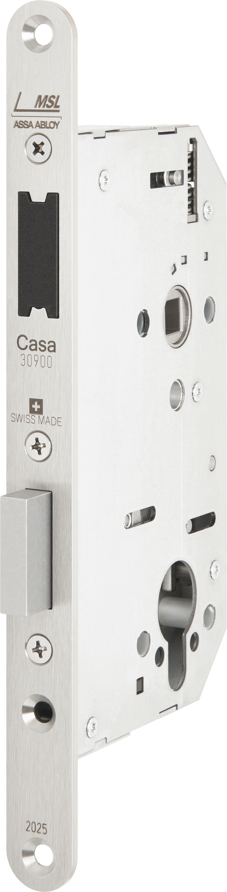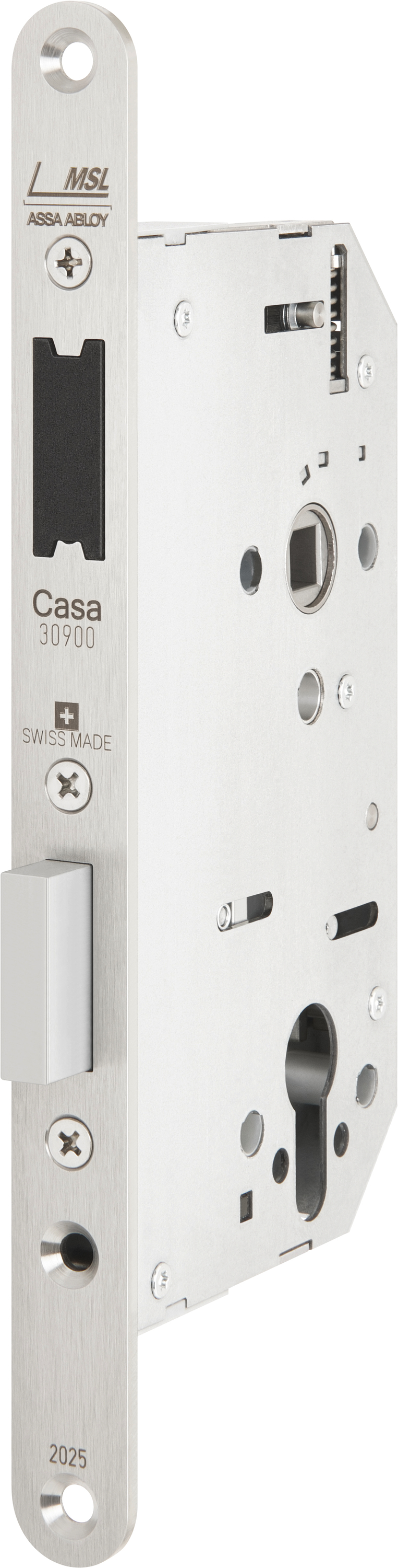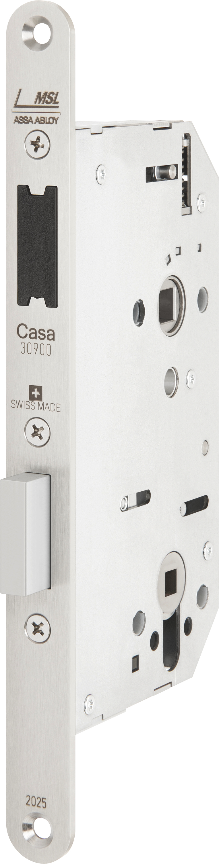 - Dieses Einsteckschloss verfügt über eine Magnetfalle und wird in Kombination mit einem passenden MSL-Magntschliessblech B-30900 eingesetzt. Bei offener Tür befindet sich die Falle in bündiger Position zum Stulp. Beim Schliessen der Tür wird die Magnetfalle erst vom Magnetschliessblech in den Rahmen gezogen, wenn die Endposition der Tür erreicht ist. So wird der Aufprall der Falle auf den Rahmen oder auf das Schliessblech verhindert und bietet so eine schadenfreie sowie geräuscharme Schliessung.