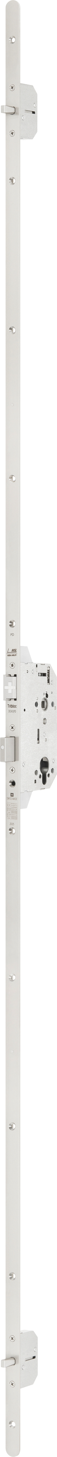• These multi-point locks feature a door handle, panic door fitting or push bar on the inside of the door. A door handle is also fitted on the outside of the door. When locked, the door cannot be opened from the outside, but can always be opened from the inside using the door handle, panic door fitting or push bar (panic function). The square spindle (nut) is divided in panic function D. After the handle is operated from the inside, the door can also be opened automatically from the outside, i.e. the handle is coupled to the outside and rescue measures are not impeded. With this function, the door must always be locked again with the key to prevent it from being opened from the outside.