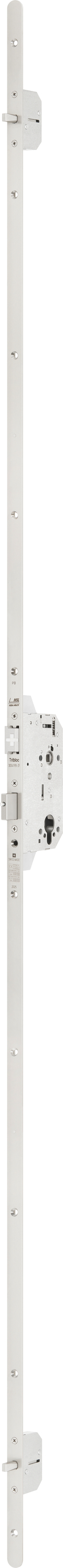 These multi-point locks feature a door handle, panic door fitting or push bar on the inside of the door. A door handle is also fitted on the outside of the door. When locked, the door cannot be opened from the outside, but can always be opened from the inside using the door handle, panic door fitting or push bar (panic function). The square spindle (nut) is divided in panic function B. This panic function is suitable for doors that also need to be opened from the outside at times (daytime operation). Daytime operation can be activated via the cylinder by turning the key in the opening direction until it stops, then the door handle on the outside is engaged. Can be used in combination with the fixed leaf lock 50590 or 51590 in double-leaf doors.