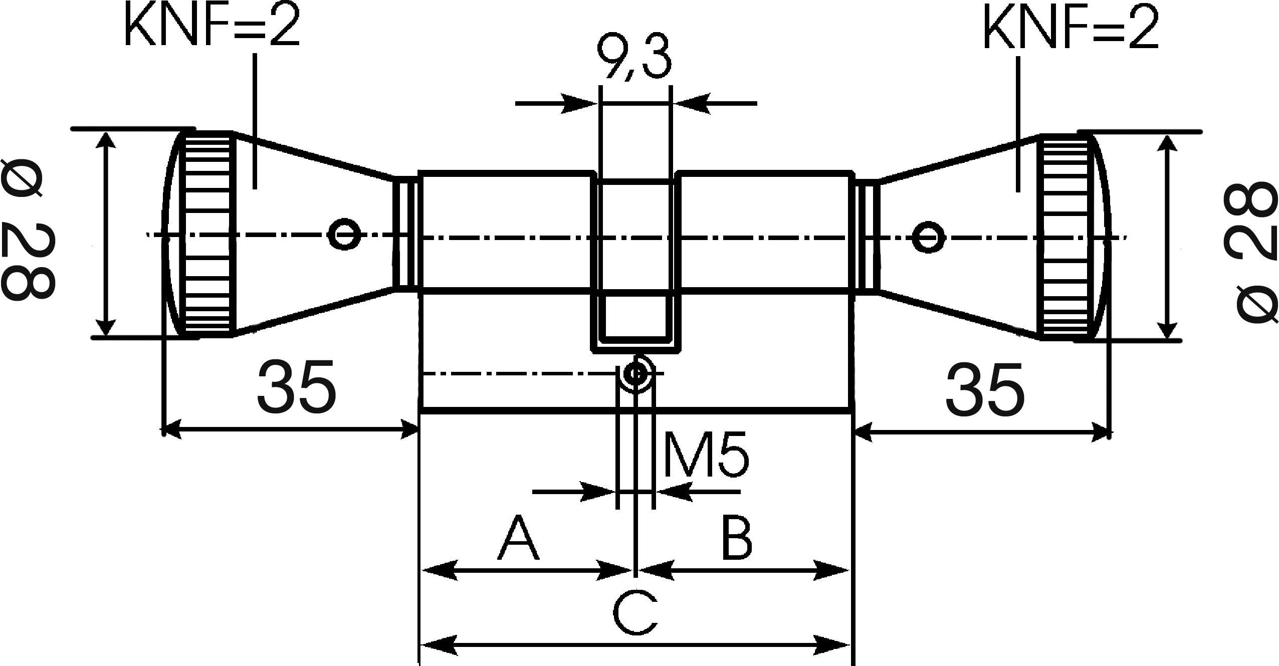 - Longueur de cylindre 61 mm (C) - A/B (L = 30/30) - d'autres longueurs (voir système SK6) sont disponible