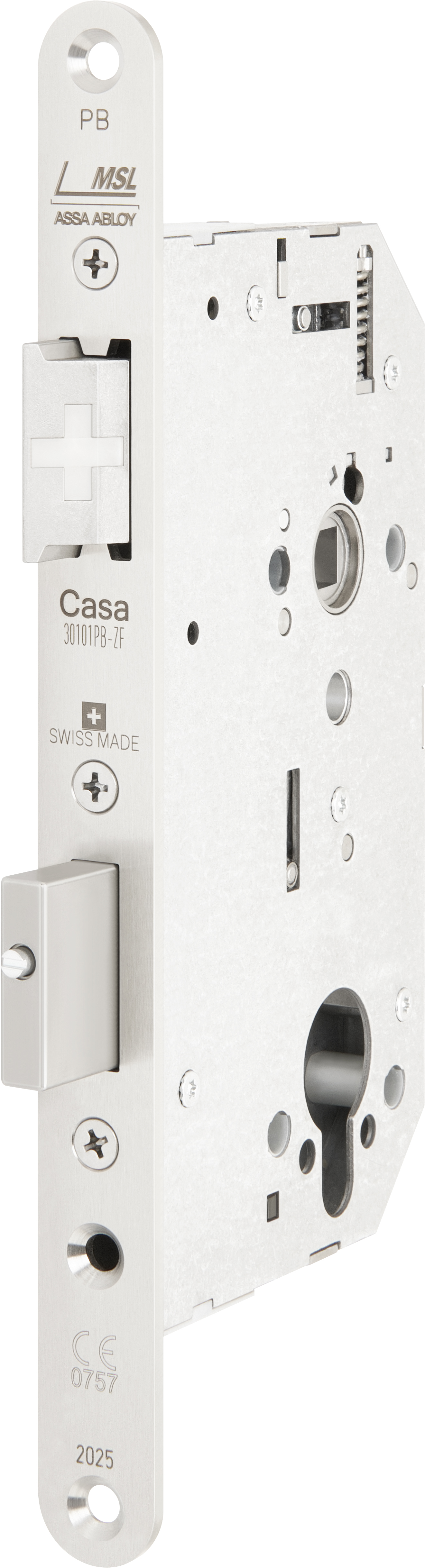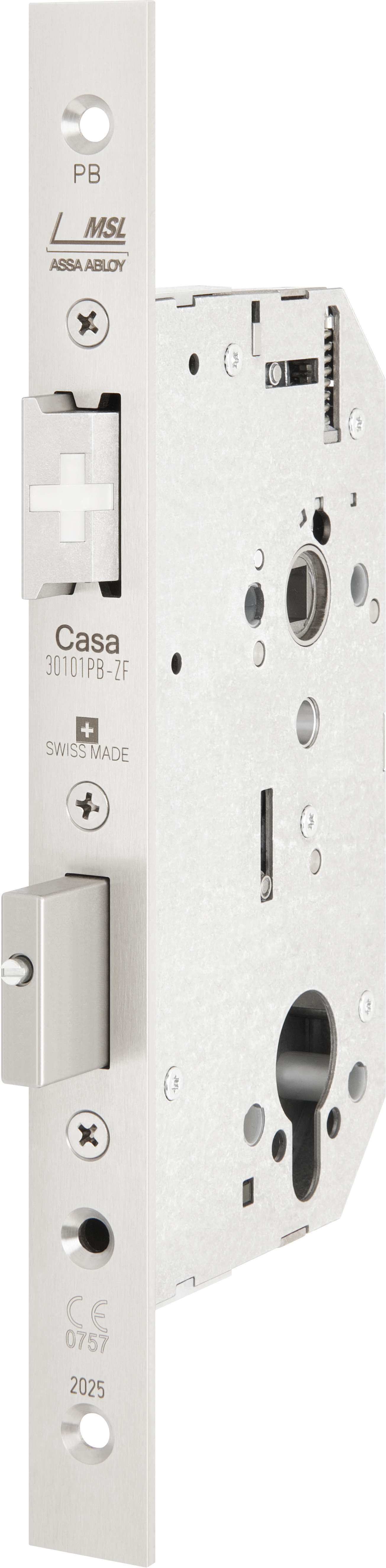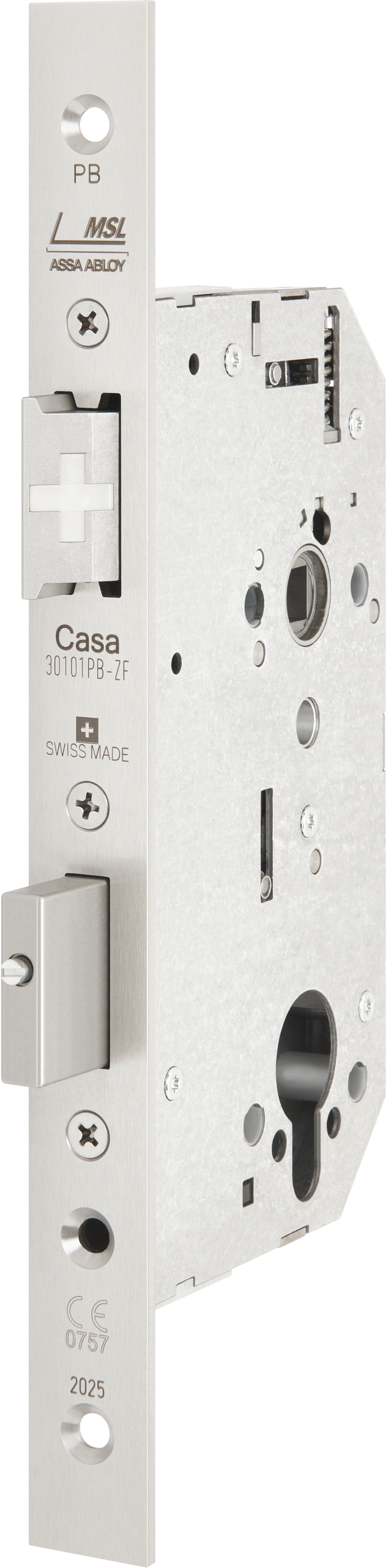 Ces serrures à mortaiser sont équipées d'une poignée, d'une ferrure anti-panique ou d'une barre poussoir à l'intérieur de la porte.