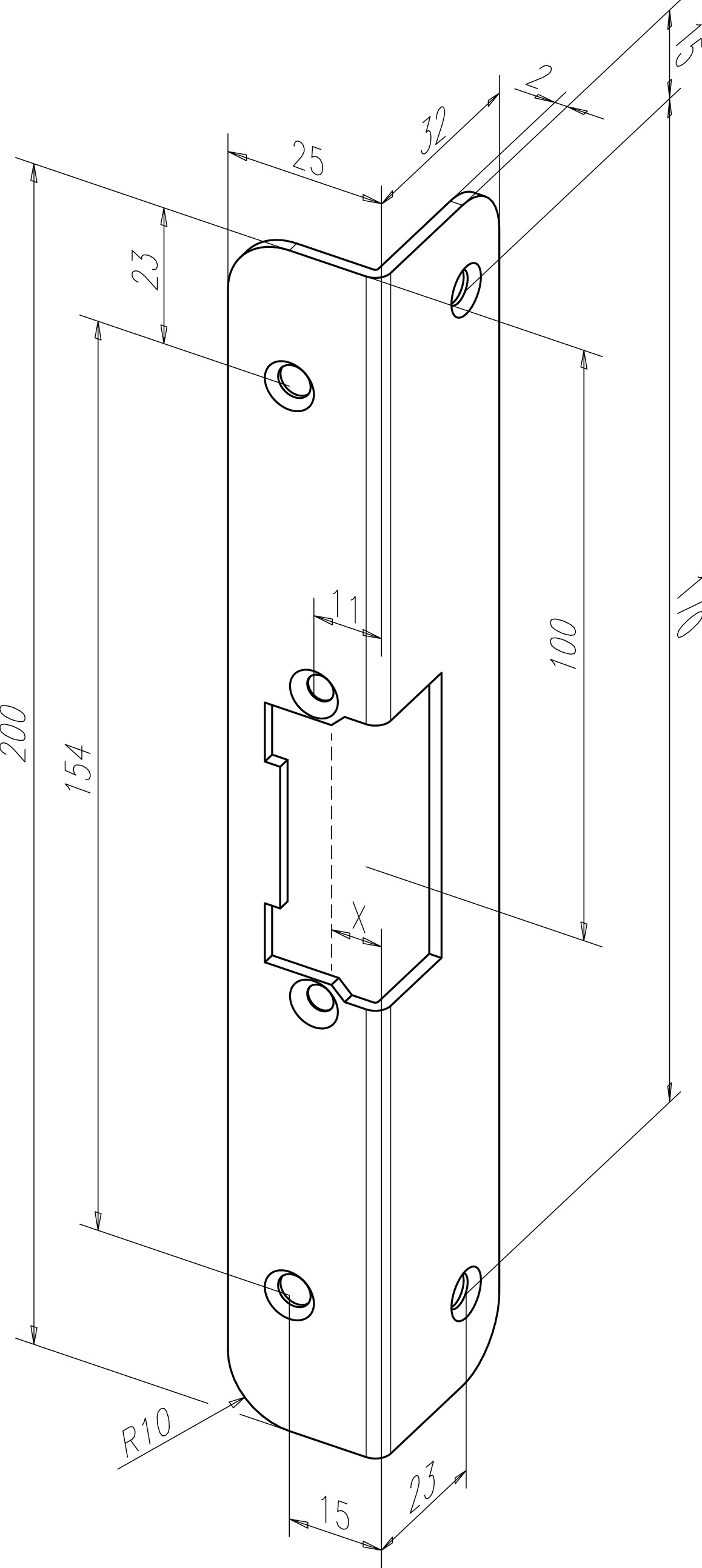Kurzes Winkelschließblech mit Fallenausschnitt.