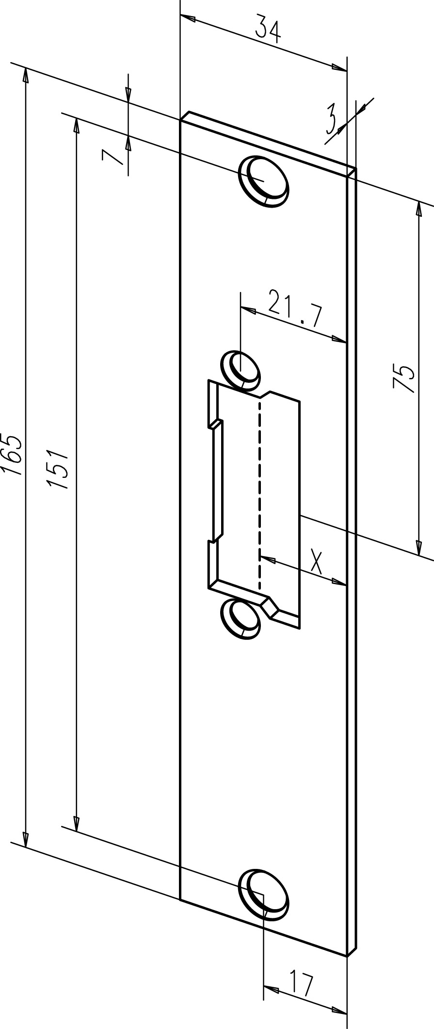 Kurzes Flachschließblech ohne Riegelausschnitt.