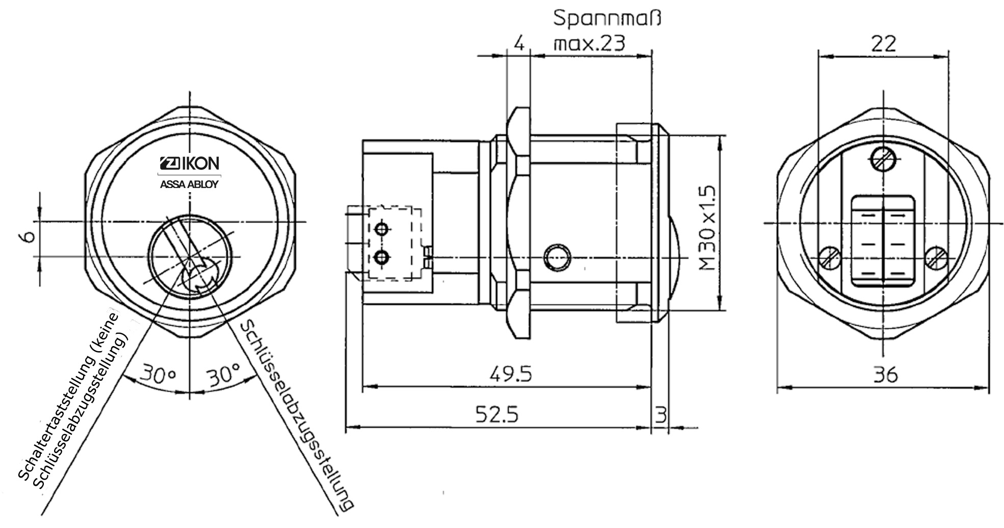 - Schaltzylinder mit einer Tast- und einer Schlüsselabzugsstellung