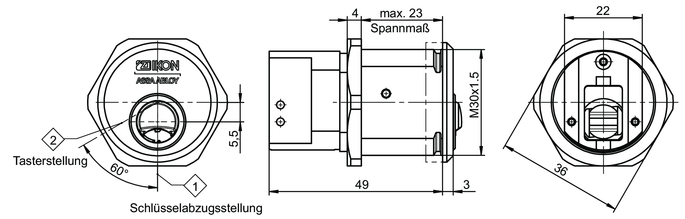 - Schaltzylinder mit einer Tast- und einer Schlüsselabzugsstellung