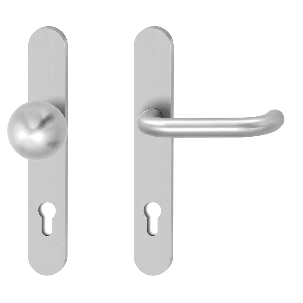 • Der Schutzbeschlag für Rohrrahmentüren erfüllt die Anforderungen an Türdrückergarnituren für Feuer- und Rauchschutztüren nach DIN 18273 und ist für Türen mit Fluchttürfunktion nach EN 179, sowie Türen mit Anforderungen an den Einbruchsschutz geeignet. Der hochwertige KC-Form Drücker auf Langschild fügt sich elegant in jedes Objekt ein. Langlebiger gebürsteter Edelstahl ist als modernes und korrosionsbeständiges Material perfekt für jede Umgebung in der es auf Qualität ankommt geeignet. Dieses Modell wird mit rundem Knauf ausgeliefert.