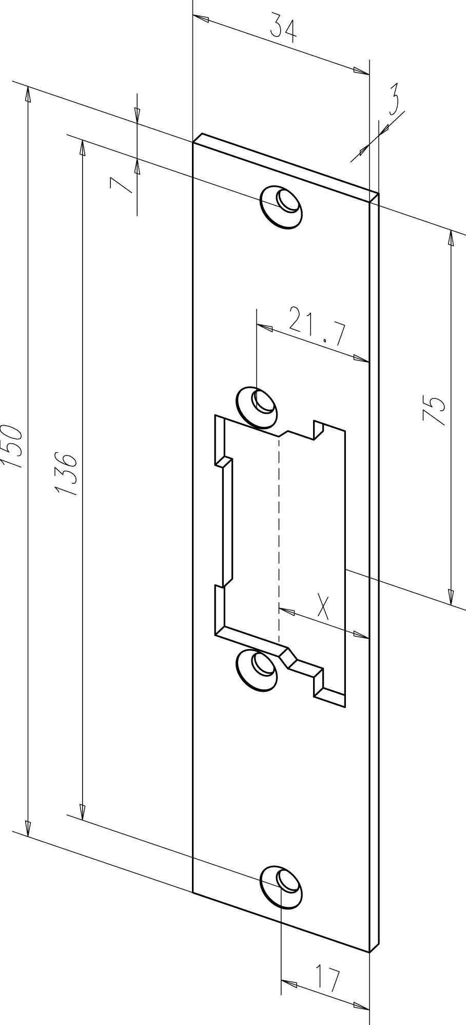 150 x 34 x 3 mm, stainless steel, DIN uni