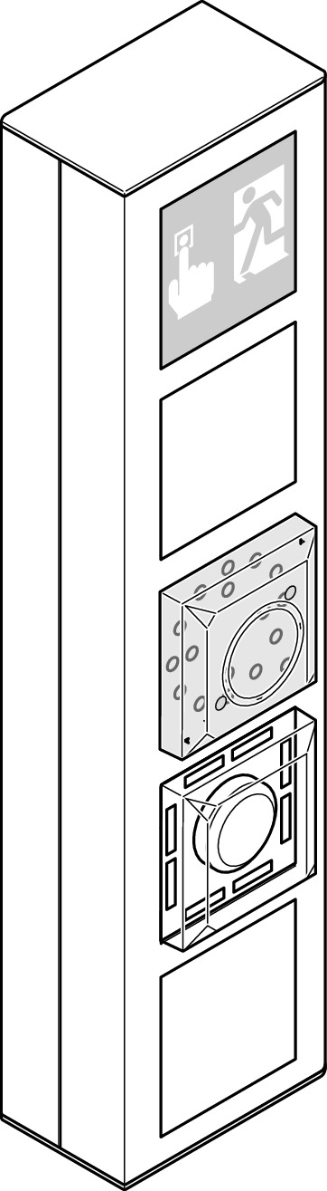 Consists of: illuminated pictogram; central cover; display release delay; emergency open module; empty position for accepting a RFID reader