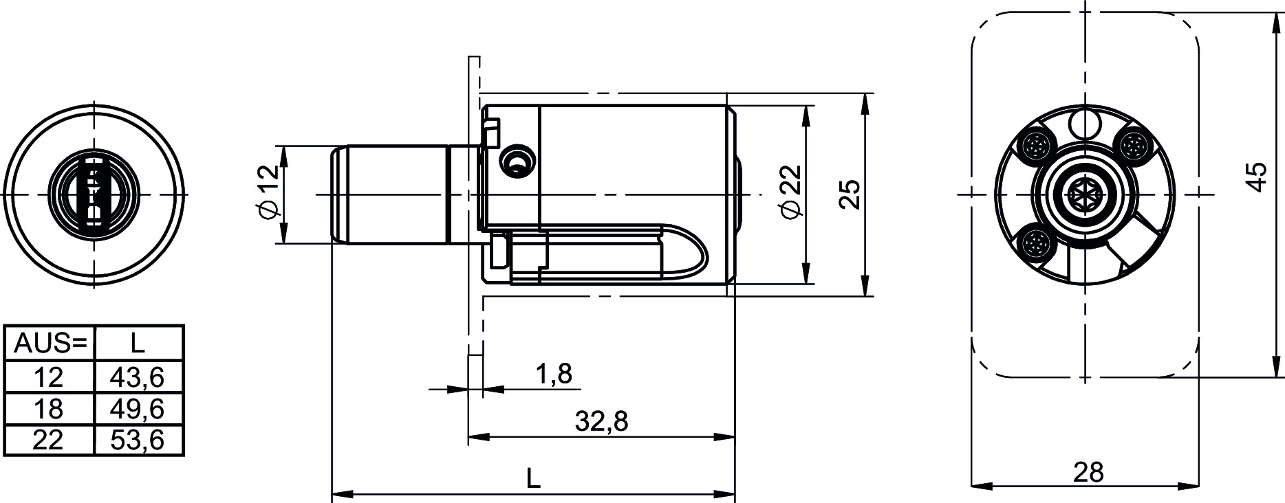 - Available with 12, 18 or 22 mm hub (AUS=12, AUS=18, AUS=22)