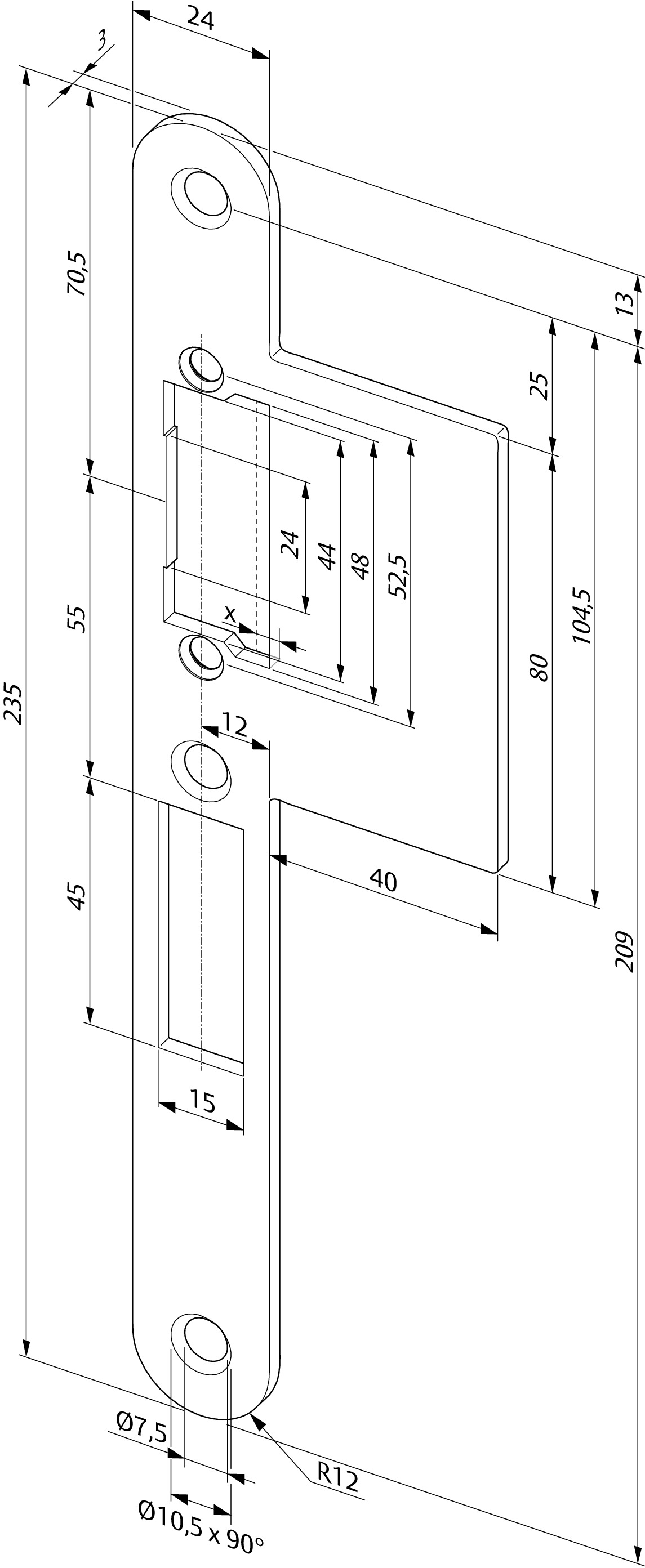Strike plate shape | R3 x 24 mm LAP = 40 mm |