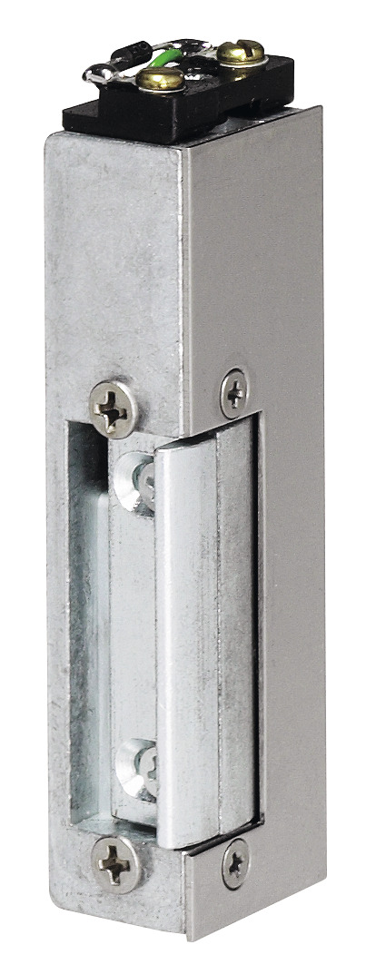 Modèle avec diode de roue libre pour les dispositifs de contrôle d'accès dans un modèle inversé. L'avantage réside dans le fait que pour la version DIN Droite la connexion pointe également vers le haut. Autrement dit, le passage de câbles ne se trouve pas dans la zone de verrouillage. Loquet FaFix réglable avec possibilité d'ajuster le loquet de la gâche électrique.