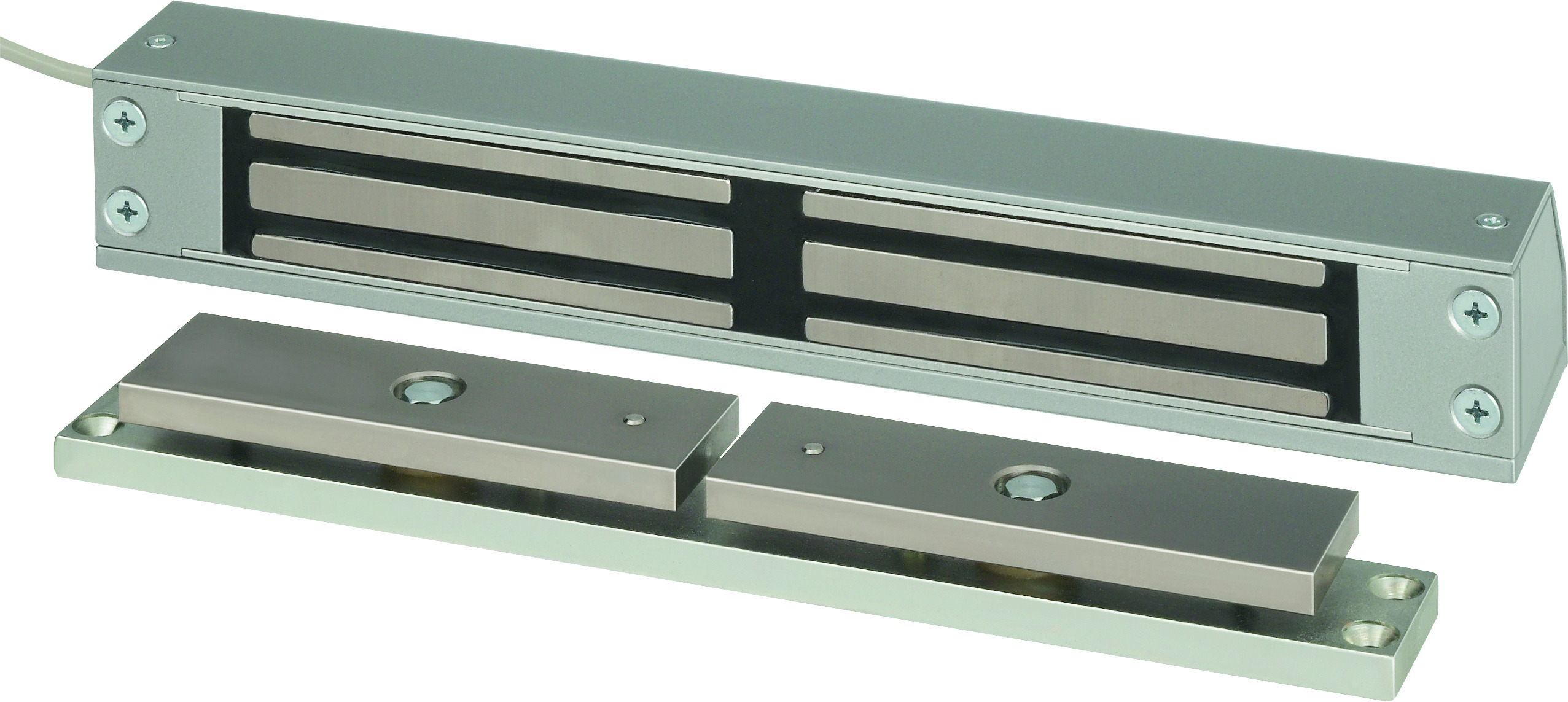 Ventouse électromagnétique compacte pour une sécurisation des portes d’issues de secours. Boîtier robuste en aluminium pour un montage en saillie, contreplaque incluse. Le contact de surveillance, par exemple le modèle 10380U-6, n’est pas compris dans la livraison. Un contact de signalisation du verrouillage (capteur à effet Hall) est intégré dans la ventouse.
